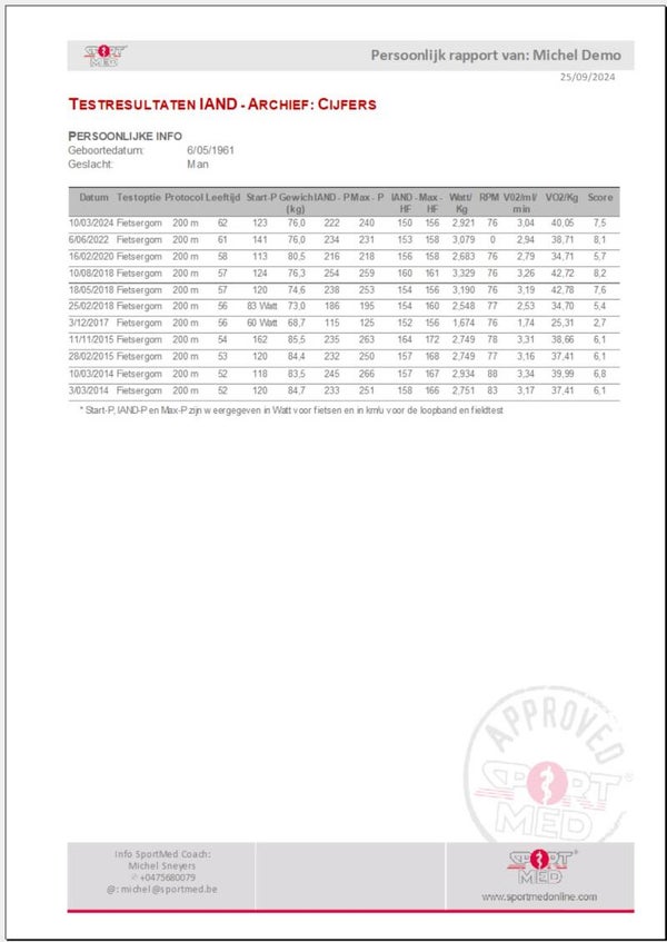 - Persoonlijke rapport (pdf via mail en samenvatting in de app)